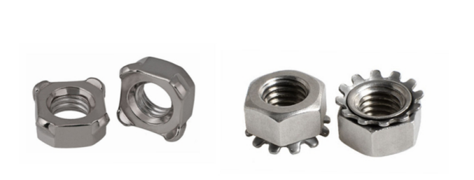 3. Svejste møtrikker: Svejste møtrikker er opdelt i kvadratiske og sekskantede typer. Disse møtrikker har flere svejsepunkter på undersiden; efter montering svejses de på plads for at opnå en meget sikker fastgørelse.
